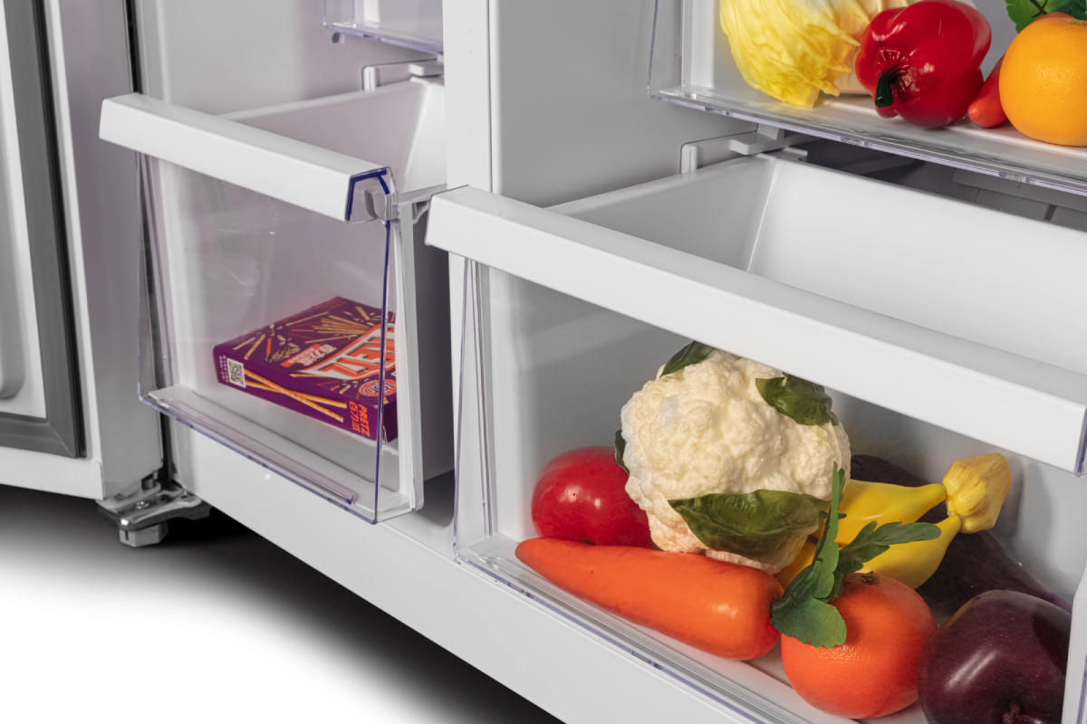 Ящики для овощей и фруктов можно найти в любой холодильной камере, какого размера ни был бы ваш холодильник — от большого устройства Side-by-Side до стандартной двухкамерной модели. В простейшем варианте они представляют собой обычные выдвижные ящики из пластика в нижней части камеры.