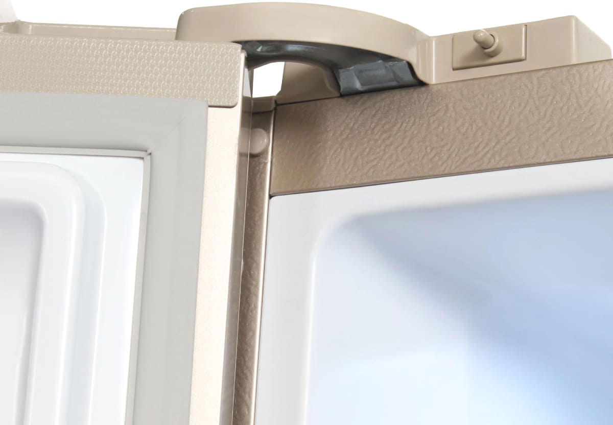 Холодильники с так называемой французской дверью или French Door также имеют распашные двери, но за ними находится не две, а одна камера. Эти двери занимают не всю высоту холодильника, а только ее часть. В нижней части подобных холодильников могут находиться либо еще две распашные двери, либо выдвижные морозильные ящики.