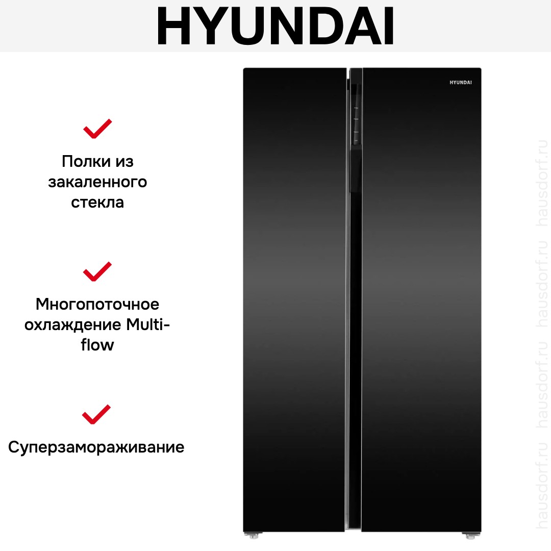 Холодильник Hyundai CS6503FV черное стекло