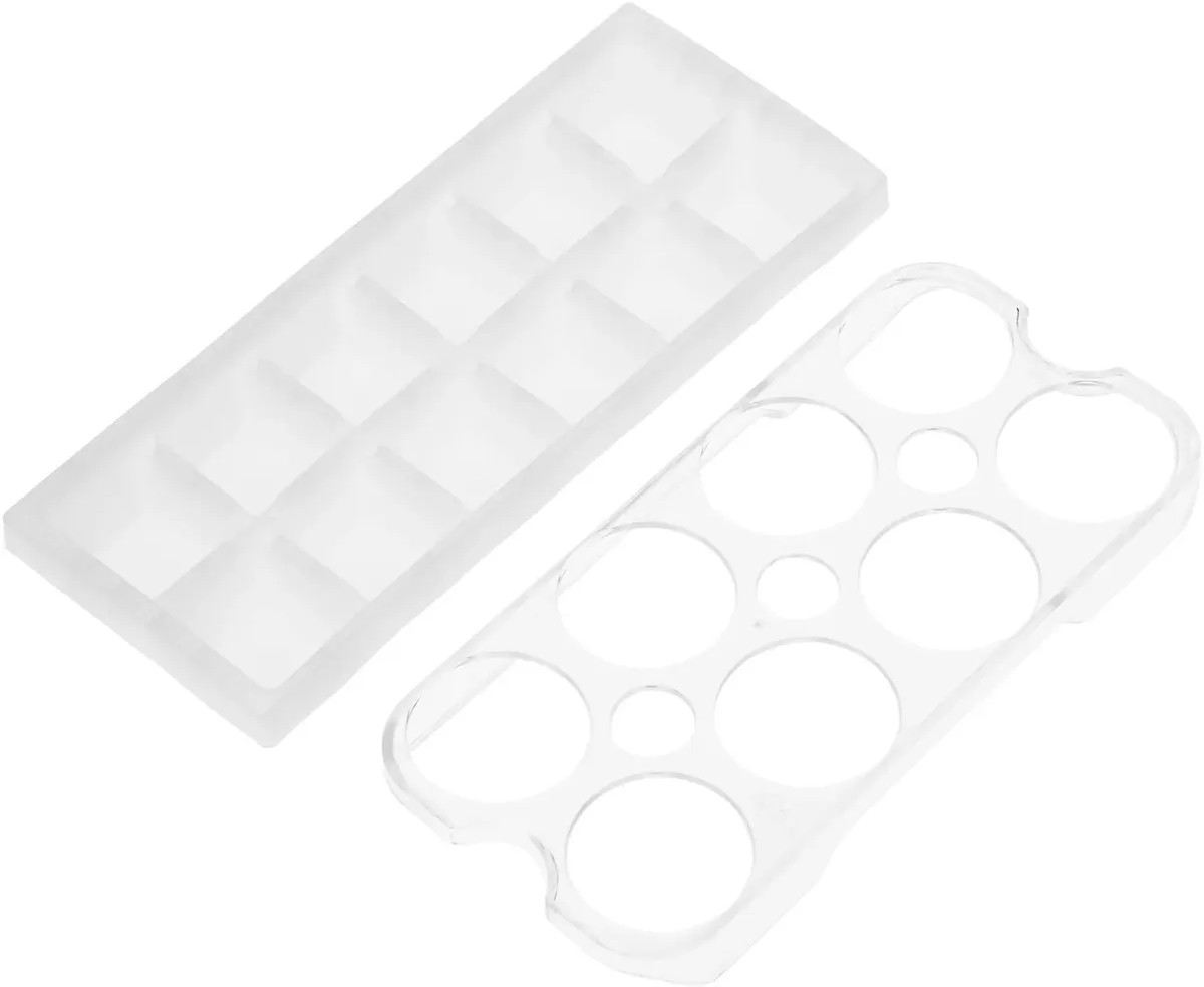 Лоток для приготовления кубиков льда имеется во всех морозильных камерах. В простейшем случае он представляет собой пластиковый контейнер, разделенный на квадратные ячейки и служащий для получения классических кубиков.