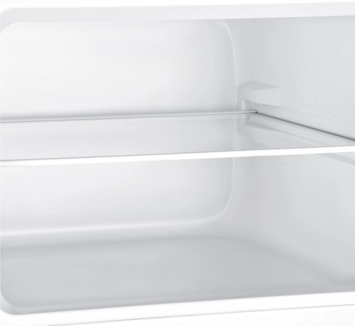 Полки в отделении бывают нескольких типов. Чаще всего встречаются полки из закаленного или ударопрочного стекла. Закаленное стекло выдерживает особенно большие нагрузки до 25 кг, так что на них можно устанавливать посуду из любого материала. Стекло является безопасным нейтральным материалом, не желтеет и не портится со временем, а также быстро и легко моется. Для того чтобы предотвратить проливание жидкости, полки оснащаются металлической или пластиковой окантовкой.