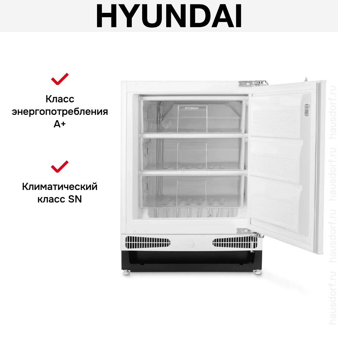 Встраиваемый морозильник Hyundai HBF-0810. Элегантный встроенный корпус создаёт аккуратный фронт под ваш фасад и обеспечивает скрытое размещение техники в кухонном модуле. Система жесткого крепления door on door позволяет крепить фасад непосредственно к двери, что сохраняет ровную линию мебели без щелей. Белый фронт и окрашенные боковые панели гармонично сочетаются с большинством интерьеров, а металлический корпус гарантирует долговечность и устойчивость к механическим воздействиям.