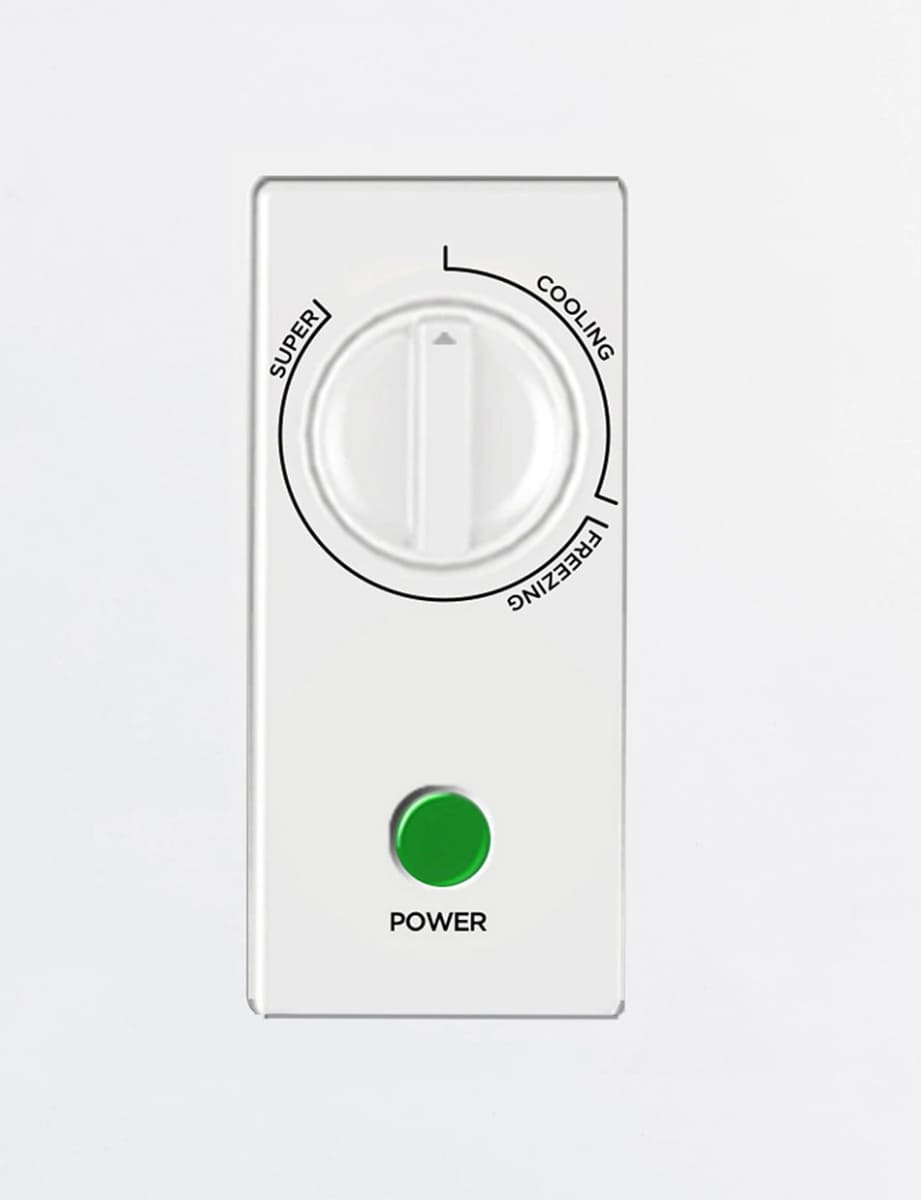 Основным элементом управления в холодильниках с механической или электромеханической системой служит поворотной переключатель с делениями. Поворотом ручки можно регулировать степень охлаждения на нескольких уровнях — от минимального до максимального. Точное значение температуры в таких устройствах установить невозможно. Кроме того, во всех холодильниках присутствует система индикации, которая действует при повышении температуры в камере выше заданного значения, а также лампочка, которая загорается при неплотно закрытой дверце.