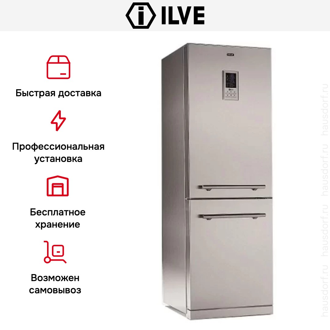 Ilve RT60C — двухкамерный холодильник с полуэлектронным контролем температуры. Модель выполнена в стиле Techno и снабжена внешней панелью управления. Для удобства размещения устройства в кухонном интерьере предусмотрена возможность перенавешивания дверец.