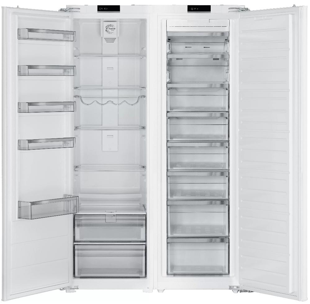 Встраиваемый прибор Side-by-Side с жесткими креплениями Door-on-Door. Благодаря регулировке влажности в зоне свежести овощи и фрукты дольше сохраняют свои питательные вещества. Широкие полки из стекла в холодильном, вместительные ящики в морозильном отделении позволяют разместить продукты на неделю и больше.