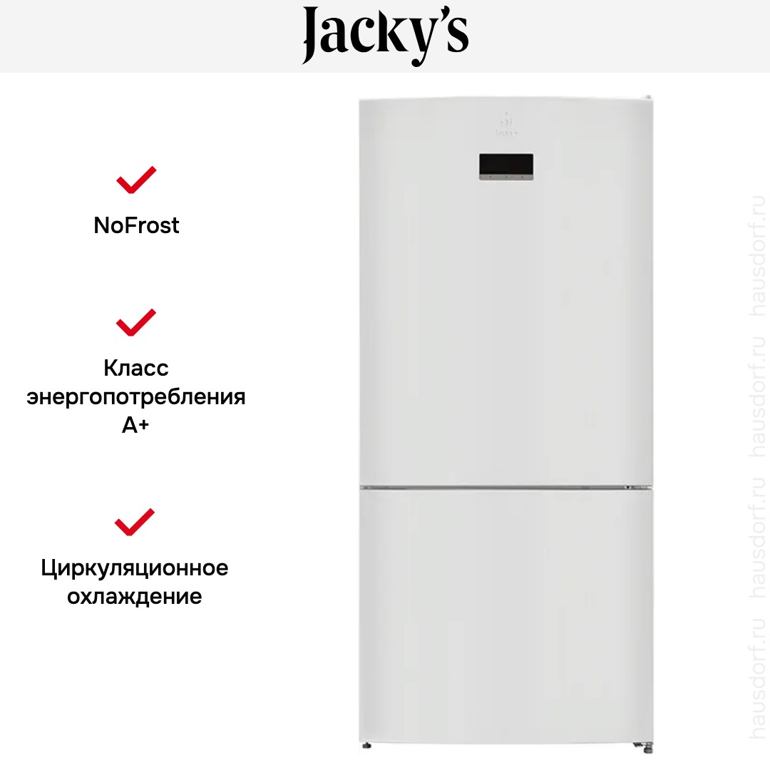 Холодильник Jacky s JR-FW568EN — солидный и функциональный прибор для большой семьи или для тех, кто любит запасаться продуктами надолго. Его белый корпус высотой 186 см и шириной 84 см выглядит сдержанно и легко впишется в классический или современный интерьер. Глубина 75 см и аккуратные линии создают впечатление монолитности, а дверной упор справа делает расположение удобным для большинства кухонных планировок.