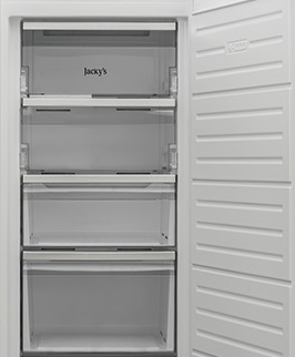 Морозильник с 7 ящиками — некоторые выдвигаются, остальные имеют откидную крышку. Благодаря такой системе удобно закладывать и доставать продукты — вы сможете разместить и объемные упаковки, и много небольших свертков. На удобном дисплее, расположенном прямо на дверце, отображается информация о выбранном режиме, текущей температуре, активированной защите от детей. Устройство способно замораживать до 21 кг продуктов в сутки. В случае отключения электроэнергии морозильник сохранит холод в течение 15 часов.