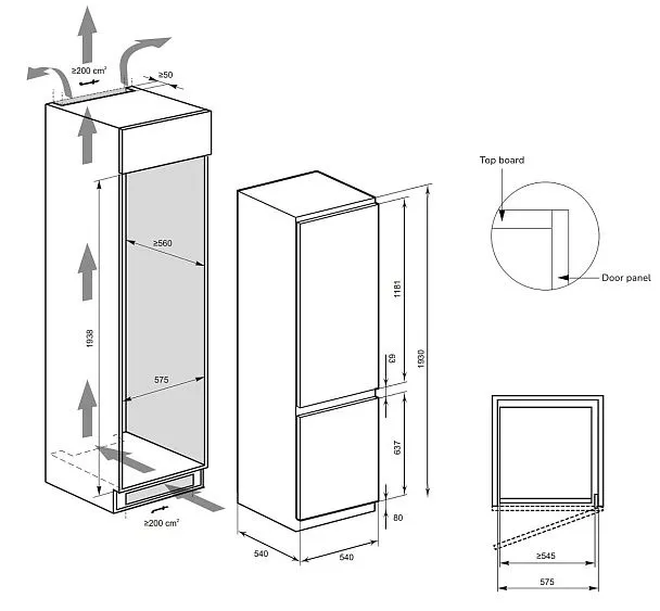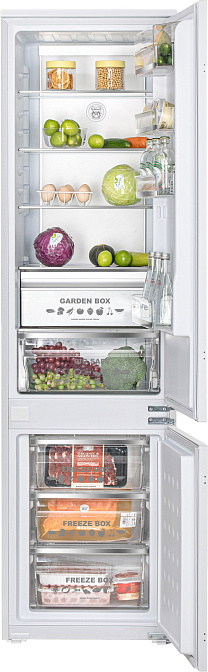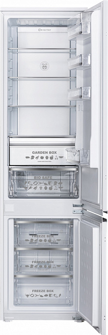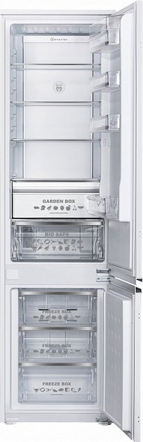 Встраиваемый прибор проще разместить в комнате, даже если общий метраж не такой уж большой. Вы можете спрятать его за декоративной панелью от мебельного фасада — советуем заранее определить нишу и заказывать панели исходя из типа крепления к двери. Способ монтажа в данной модели: жесткое крепление (система door on door) Благодаря внушительным размерам, в частности высоте, она подходит большим пространствам — просторной кухне, еврогостиной. Вы можете поменять направление открывания двери, так как упор переставляемый и ее можно перевесить на другую сторону. Такая функция открывает больше возможностей для установки. Холодильник с морозильником обладает всеми опциями, которые чаще всего ищут и выбирают покупатели. Стандартная конфигурация — универсальный вариант для любой квартиры. Количество камер: 2.