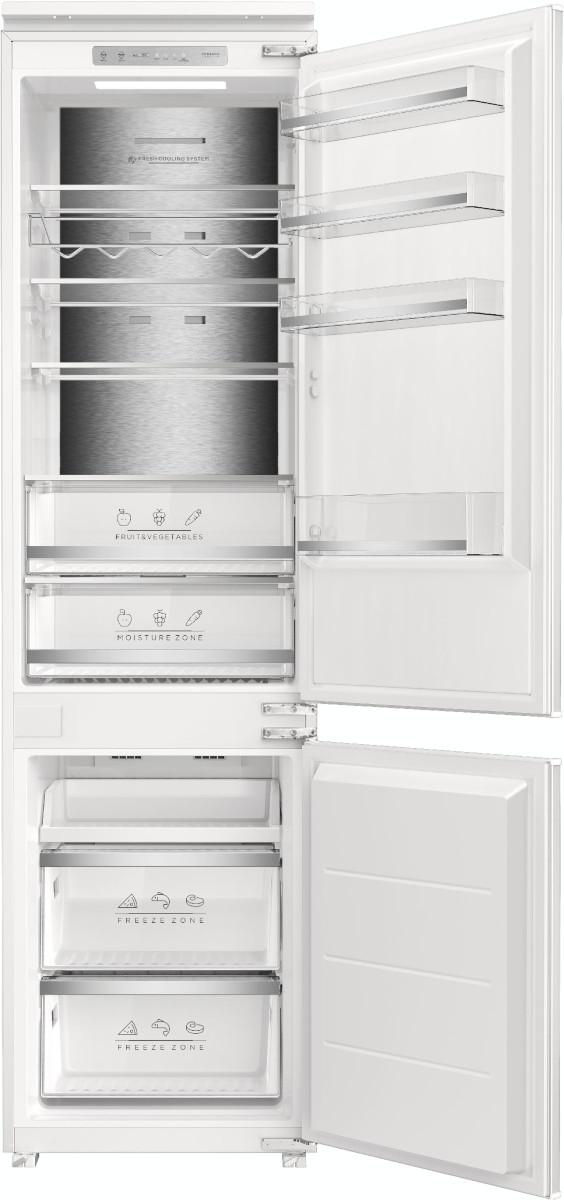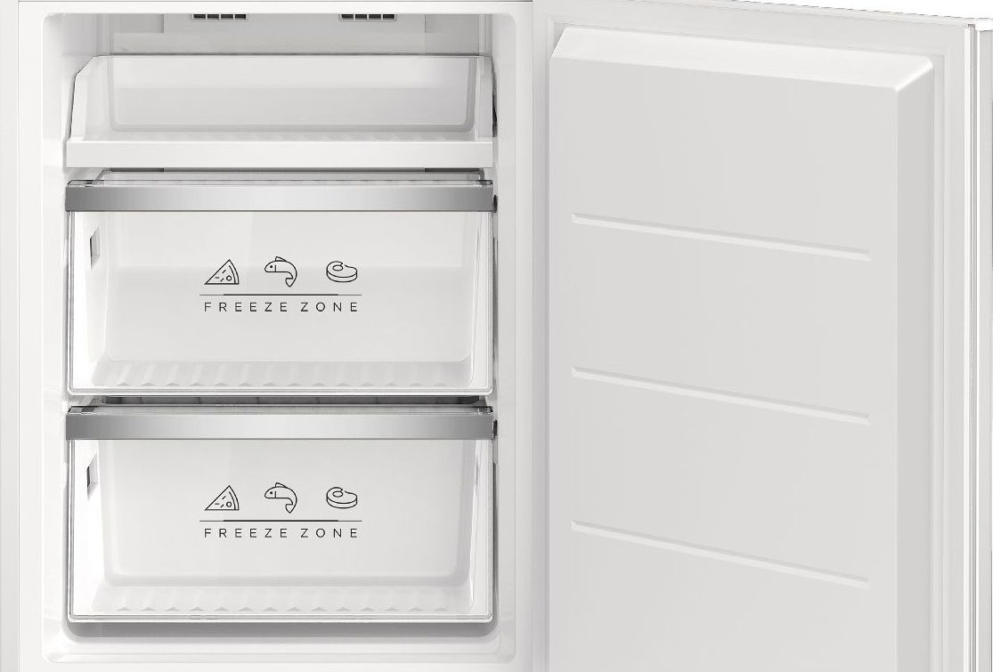 Встраиваемый прибор проще разместить в комнате, даже если общий метраж не такой уж большой. Вы можете спрятать его за декоративной панелью от мебельного фасада — советуем заранее определить нишу и заказывать панели исходя из типа крепления к двери. Способ монтажа в данной модели: скользящее крепление двери (система door sliding) Благодаря внушительным размерам, в частности высоте, она подходит большим пространствам — просторной кухне, еврогостиной. Вы можете поменять направление открывания двери, так как упор переставляемый и ее можно перевесить на другую сторону. Такая функция открывает больше возможностей для установки. Холодильник с морозильником обладает всеми опциями, которые чаще всего ищут и выбирают покупатели. Стандартная конфигурация — универсальный вариант для любой квартиры. Количество камер: 2.