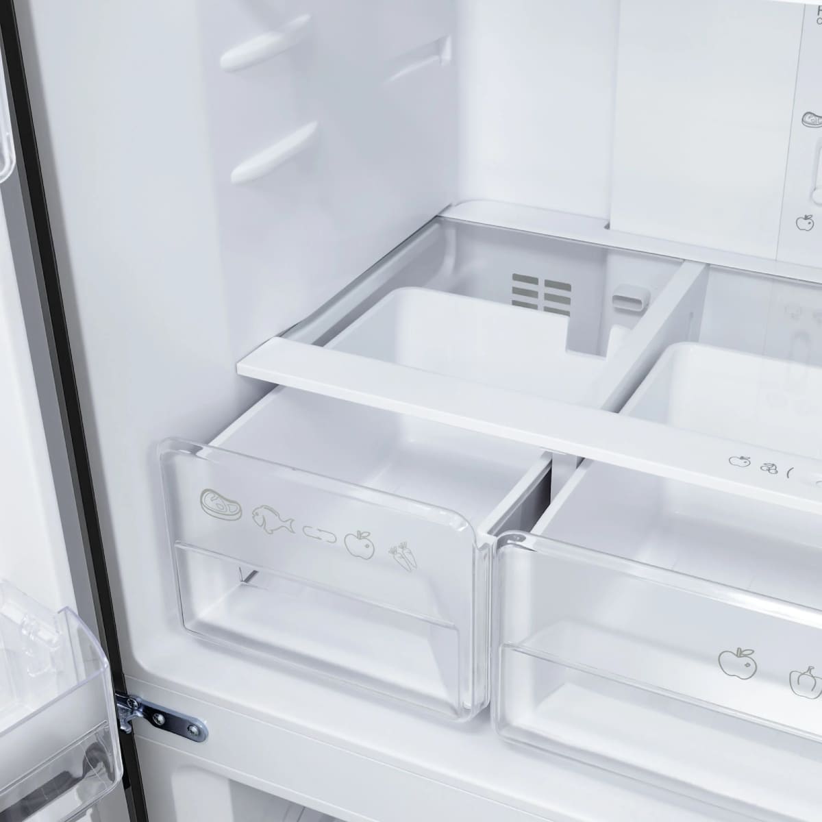 Трехкамерные модели выпускаются в нескольких вариантах. В некоторых случаях в качестве третьей камеры поступает так называемая зона свежести — отделение, где поддерживается температура около 0 градусов. В другом варианте подобные модели имеют морозильную камеру, состоящую из двух выдвижных ящиков.