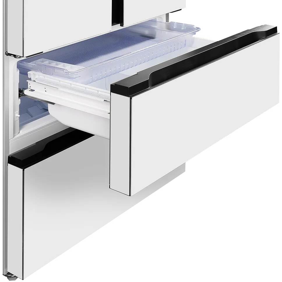 Холодильники с так называемой французской дверью или French Door также имеют распашные двери, но за ними находится не две, а одна камера. Эти двери занимают не всю высоту холодильника, а только ее часть. В нижней части подобных холодильников могут находиться либо еще две распашные двери, либо выдвижные морозильные ящики.