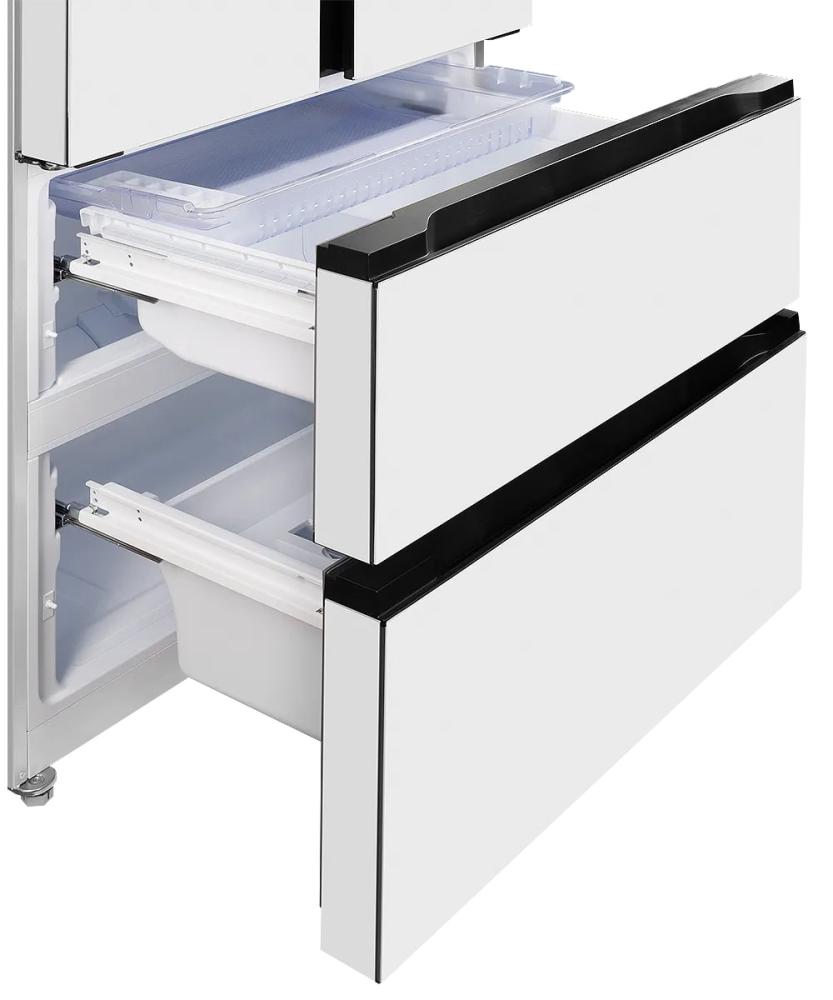 Трехкамерные модели выпускаются в нескольких вариантах. В некоторых случаях в качестве третьей камеры поступает так называемая зона свежести — отделение, где поддерживается температура около 0 градусов. В другом варианте подобные модели имеют морозильную камеру, состоящую из двух выдвижных ящиков.