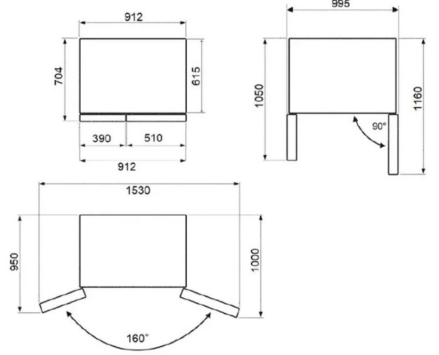 Наиболее разнообразны по ширине большие модели холодильников с распашными дверями типа Side-by-Side или модели с так называемыми французскими дверями. Ширина этих устройств может варьироваться в диапазоне от 80 до 160 см: многие из них представляют собой полноценный холодильник и морозильную камеру, расположенные рядом друг с другом. Несколько реже встречаются отдельностоящие холодильники нестандартной ширины от 70 до 90 см с верхней или нижней морозильной камерой — в основном это так называемые азиатские модели с морозильником сверху.