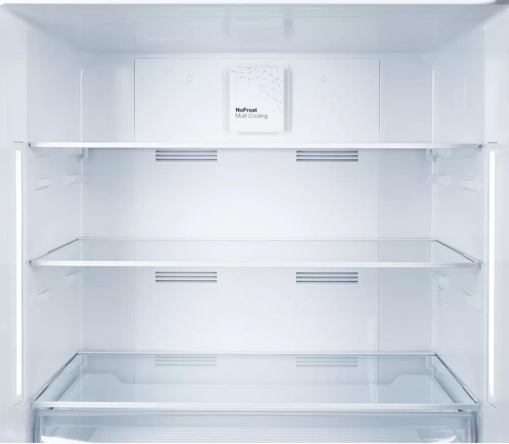 No Frost (Total No Frost, Frost Free): вентилятор обеспечивает циркуляцию охлажденного воздуха, благодаря чему лед не нарастает на стенке, а концентрируется только на скрытом внутри холодильника испарителе. Талая вода собирается в специальной емкости и испаряется. Такой холодильник не нужно размораживать – это экономит время и позволяет не останавливать прибор. Благодаря этим плюсам в современных моделях No Frost – самая распространенная система.