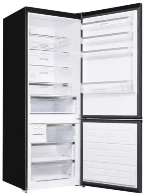 Данная модель — отдельностоящая, поэтому нужно тщательно подобрать место для ее размещения. Благодаря внушительным размерам, в частности высоте, она подходит большим пространствам — просторной кухне, еврогостиной. Вы можете поменять направление открывания двери, так как упор переставляемый и ее можно перевесить на другую сторону. Такая функция открывает больше возможностей для установки. Холодильник с морозильником обладает всеми опциями, которые чаще всего ищут и выбирают покупатели. Стандартная конфигурация — универсальный вариант для любой квартиры. Количество камер: 2.