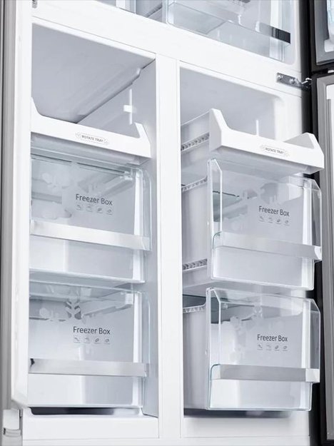 Трехкамерные модели выпускаются в нескольких вариантах. В некоторых случаях в качестве третьей камеры поступает так называемая зона свежести — отделение, где поддерживается температура около 0 градусов. В другом варианте подобные модели имеют морозильную камеру, состоящую из двух выдвижных ящиков.