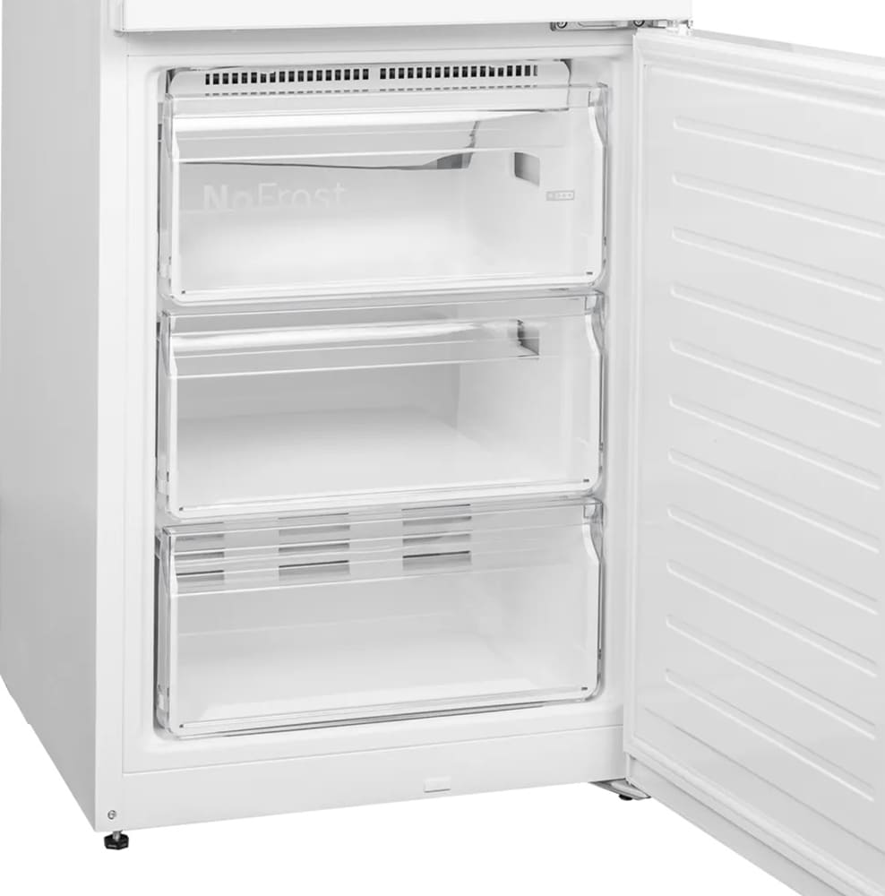 No Frost (Total No Frost, Frost Free): вентилятор обеспечивает циркуляцию охлажденного воздуха, благодаря чему лед не нарастает на стенке, а концентрируется только на скрытом внутри холодильника испарителе. Талая вода собирается в специальной емкости и испаряется. Такой холодильник не нужно размораживать – это экономит время и позволяет не останавливать прибор. Благодаря этим плюсам в современных моделях No Frost – самая распространенная система.