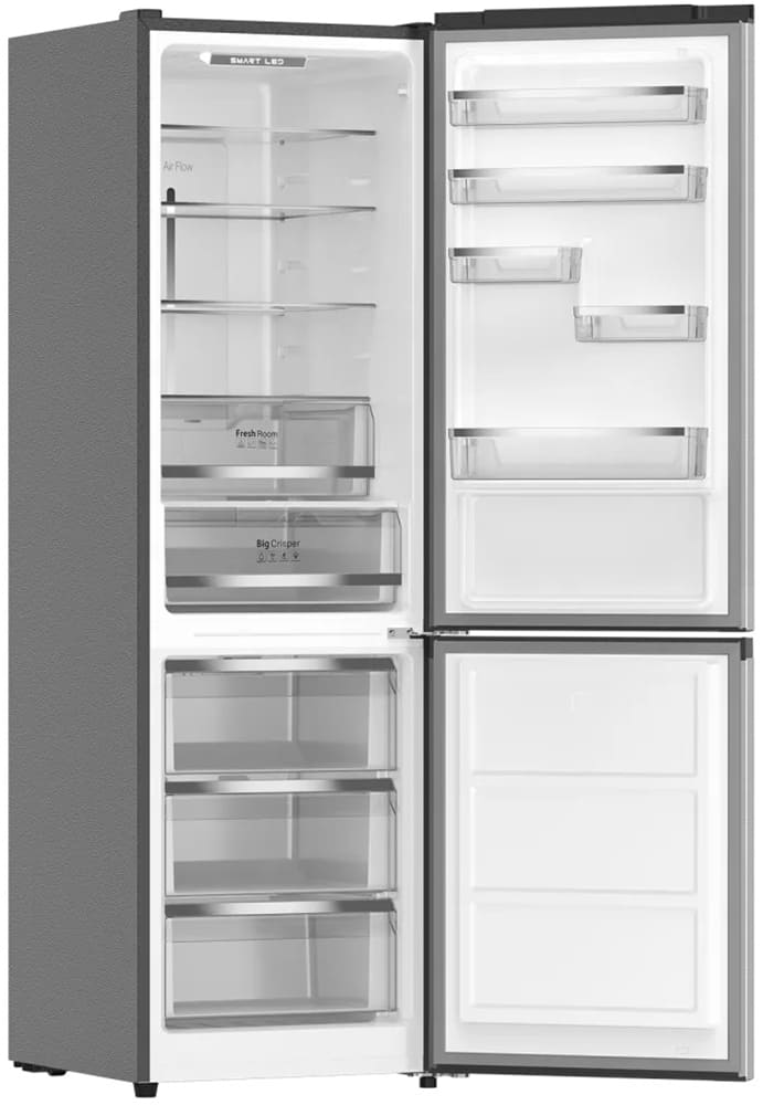 Специальная зона свежести предназначена для правильного и более длительного хранения овощей, фруктов, зелени. В ней поддерживается околонулевая температура, поэтому продукты не перемораживаются и не пересыхают. Система охлаждения этого холодильника — циркуляционная .