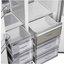 Холодильник оснащен четырьмя стеклянными полками в холодильной камере, тремя из которых можно регулировать по высоте, и тремя пластиковыми полками на дверце. Это позволяет оптимизировать пространство внутри для хранения различных продуктов. Кроме того, есть подставка для яиц и зона свежести с двумя полками/контейнерами, что позволяет сохранять продукты свежими на долгое время. Морозильная камера оснащена семью полками и тремя ящиками/отделениями, а также лотком для приготовления кубиков льда. Это позволяет удобно и эффективно использовать пространство морозильной камеры для хранения различных продуктов.