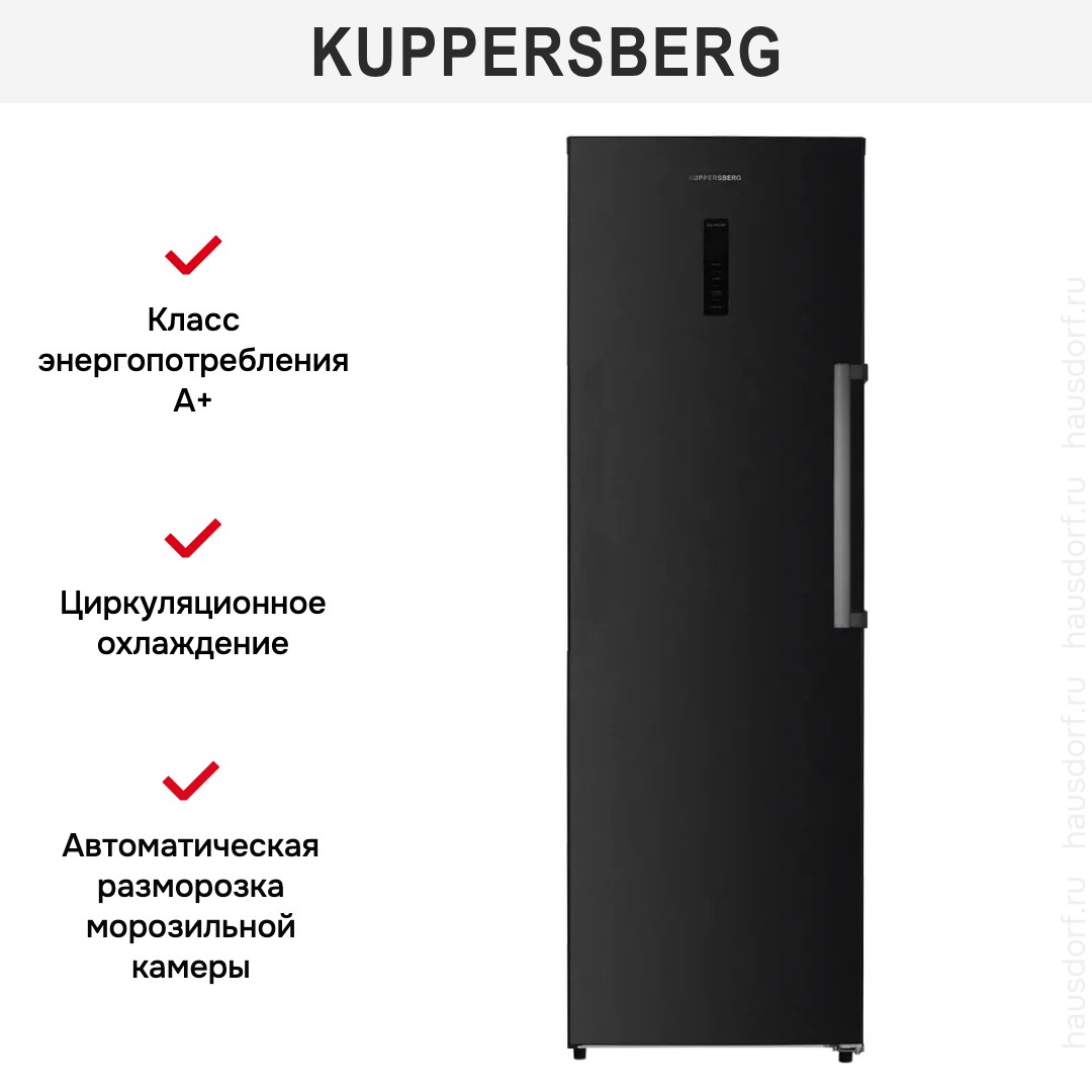 Морозильная камера Kuppersberg NFS 189 DX — стильный отдельностоящий агрегат, который сочетает в себе эргономичный внешний вид и продуманный набор опций для хранения продуктов в домашних условиях. Высокий корпус 185×60×65 см вместительно размещает 262 литра полезного объема, распределённых между пятью стационарными полками и четырьмя выдвижными ящиками, а в дверной части предусмотрено два дополнительных держателя для мелких упаковок; чёрное исполнение добавляет интерьеру современности и строгости. Управление реализовано в электронном формате с сенсорными клавишами и информативным LED-дисплеем, позволяющим точно выставлять температуру и активировать режим SuperFrost для быстрого замораживания до 24 кг в сутки; индикаторы отображают текущее состояние камер и облегчают контроль, а звуковые сигналы оповестят о незакрытой створке или повышении температуры. Система циркуляционного охлаждения в сочетании с инверторным компрессором обеспечивает стабильную работу, экономию энергии и низкий уровень шума — всего 43 дБ, а хладагент R600a соответствует современным экологическим требованиям. Автоматическое размораживание избавляет от необходимости ручного ухода, внутри установлено светодиодное освещение, которое равномерно подсвечивает содержимое, а лоток для льда позволит быстро приготовить кубики для напитков. Универсальный климатический класс SN-N-ST-T гарантирует эффективную работу в широком диапазоне температур, защита от детей и звуковая индикация повысят безопасность, а возможность перевешивания двери и регулируемые ножки упрощают установку в разных помещениях. Технические параметры — питание 220-240 В при частоте 50 Гц и токе 10 А — соответствуют стандартам бытовых сетей, энергоэффективность подтверждена классом A+, что снижает нагрузку на счётчики. Подчёркнутая функциональность в паре с лаконичным обликом делает этот прибор отличным решением для тех, кто ценит высокое качество хранения продуктов, простоту обслуживания и современные технические решения без лишних усложнений.