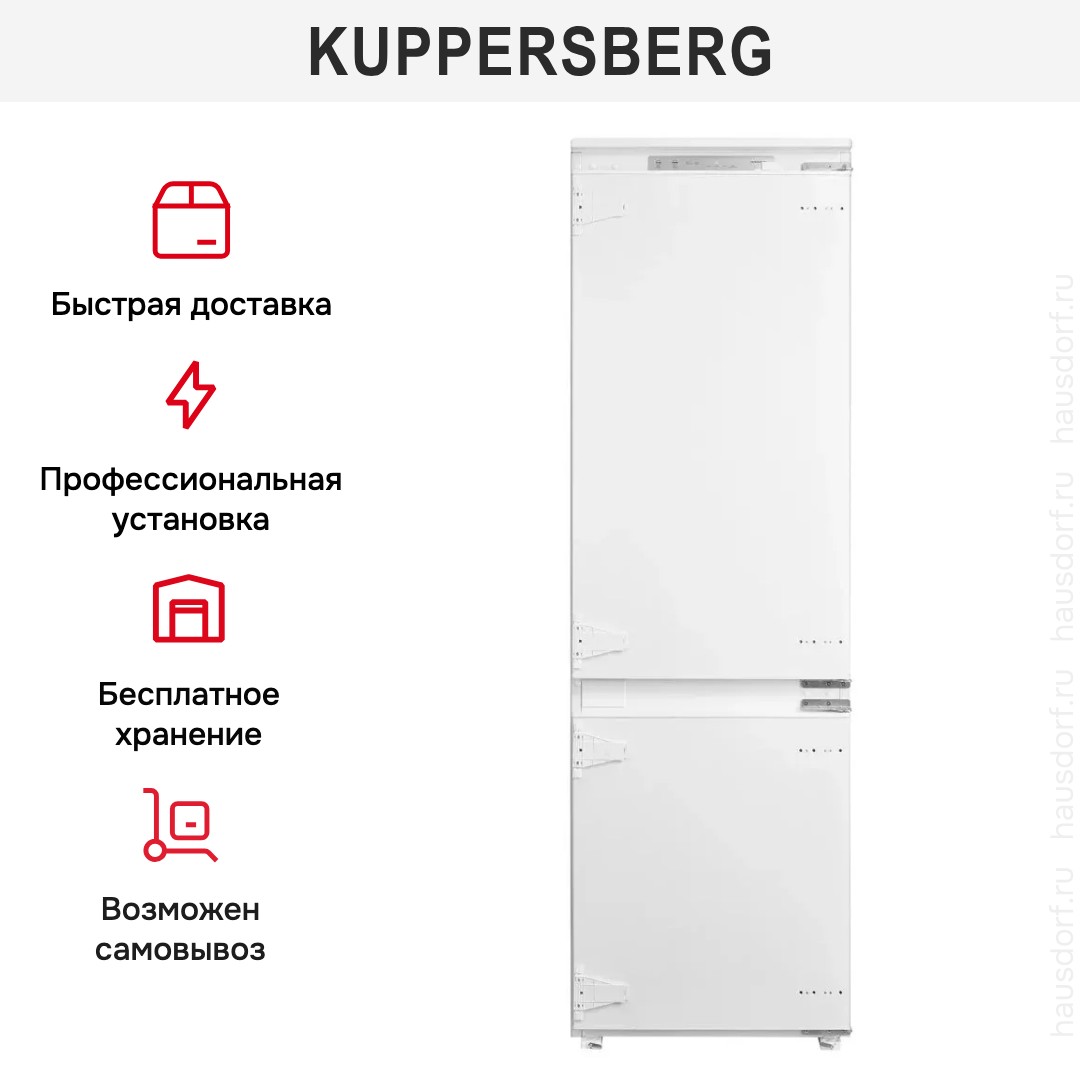 Встраиваемый холодильник KUPPERSBERG RBN 1761 — это сочетание аккуратного внешнего вида и продуманной внутренней организации, подходящее для современных кухонь, где важны эстетика и функциональность. Корпус рассчитан под встраивание в нишу стандартных размеров, габариты прибора позволяют разместить его даже в ограниченном пространстве при условии соблюдения рекомендованных параметров установки; монтаж реализован с системой door sliding, допускающей перевешивание двери и адаптацию под фасад ваших модулей, что делает это решение универсальным для разных интерьеров и полностью интегрируемых кухонных зон. Дизайн ориентирован на минимализм: аккуратная фронтальная панель остаётся невидимой под навесом фасада, а внутренняя планировка выполнена так, чтобы обеспечить лёгкий доступ к запасам и оптимальную циркуляцию прохлады по всем отсекам. Внутри располагаются четыре стеклянные полки, три из которых регулируются по высоте, удобная подставка для бутылок и три полки на дверце, обеспечивающие гибкость размещения посуды и продуктов, а также отдельный большой ящик и два отдела для фруктов и овощей, которые сохраняют свежесть благодаря антибактериальному покрытию и равномерному температурному распределению. Холодильная камера оборудована светодиодной подсветкой, которая равномерно освещает все зоны, а сенсорное электронное управление с дисплеем делает настройку параметров понятной и быстрой; доступны опции регулировки температуры и режим «Отпуск» для длительного отсутствия, а звуковая индикация открытой двери подскажет о необходимости вмешательства. Технологическая составляющая включает инверторный компрессор с низким уровнем шума (всего 35 дБ), экологичный хладагент R600a и класс энергопотребления A++, что гарантирует экономичный расход электроэнергии и длительную работу без лишнего шума. Морозильная камера расположена внизу и имеет объём 76 литров, разбитый на три выдвижных ящика, которые упрощают хранение замороженных продуктов и позволяют быстро находить нужное; функция суперзамораживания защищает качество и структуру заготовок, а лоток для льда обеспечивает удобное приготовление кубиков. Оба отделения оснащены системой No Frost, исключающей необходимость ручного размораживания и предотвращающей образование наледи, что снижает обслуживание и продлевает срок службы. Общий полезный объём составляет 274 литра, из которых 198 литров приходится на холодильную часть, а автономное сохранение холода обеспечивает до 8 часов без электропитания, что важно для непредвиденных ситуаций. Класс климатической устойчивости T гарантирует стабильную работу при тёплых температурах помещения, а циркуляционная система охлаждения обеспечивает равномерность микроклимата по объёму камер. Эргономика дополнена подставкой для яиц, удобными ручками и прочной конструкцией полок, а габариты ниши для встраивания и точные внешние размеры делают выбор и установку прогнозируемыми и простыми. Этот прибор прекрасно впишется в современную кухню, ориентированную на функциональность и аккуратный внешний вид, обеспечивая эффективное хранение, бережную обработку продуктов и комфортное управление. холодильники Kuppersberg RBN 1761 холодильники Kuppersberg RBN 1761