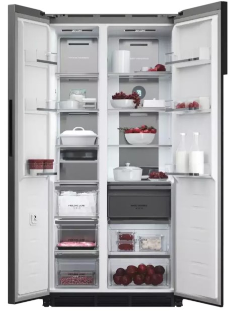 Холодильники Side-by-Side, что в переводе означает «бок-о-бок», — вместительные устройства, в которых холодильная и морозильная камеры располагаются рядом друг с другом. Они предназначаются для хранения значительного запаса продуктов и иногда называются холодильниками с американским типом компоновки, поскольку такие приборы с распашными дверями появились именно в США.
