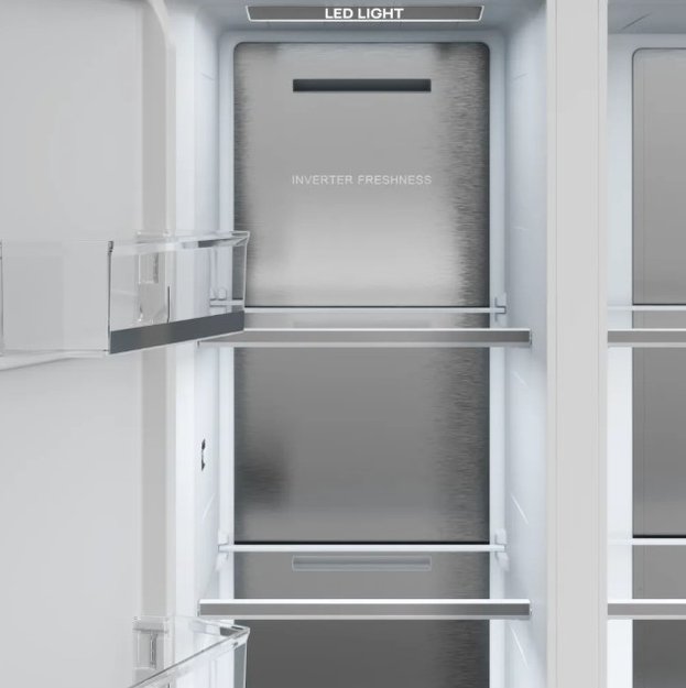Встраиваемый прибор проще разместить в комнате, даже если общий метраж не такой уж большой. Вы можете спрятать его за декоративной панелью от мебельного фасада — советуем заранее определить нишу и заказывать панели исходя из типа крепления к двери. Благодаря внушительным размерам, в частности высоте, она подходит большим пространствам — просторной кухне, еврогостиной. Холодильник Side-by-Side с необычным расположением камер — сбоку друг от друга — позволяет увеличить объем продуктов для хранения. Такой вариант подходит обладателям просторной кухни, большим семьям, людям, которые запасают продукты и готовят впрок. Количество камер: 2.