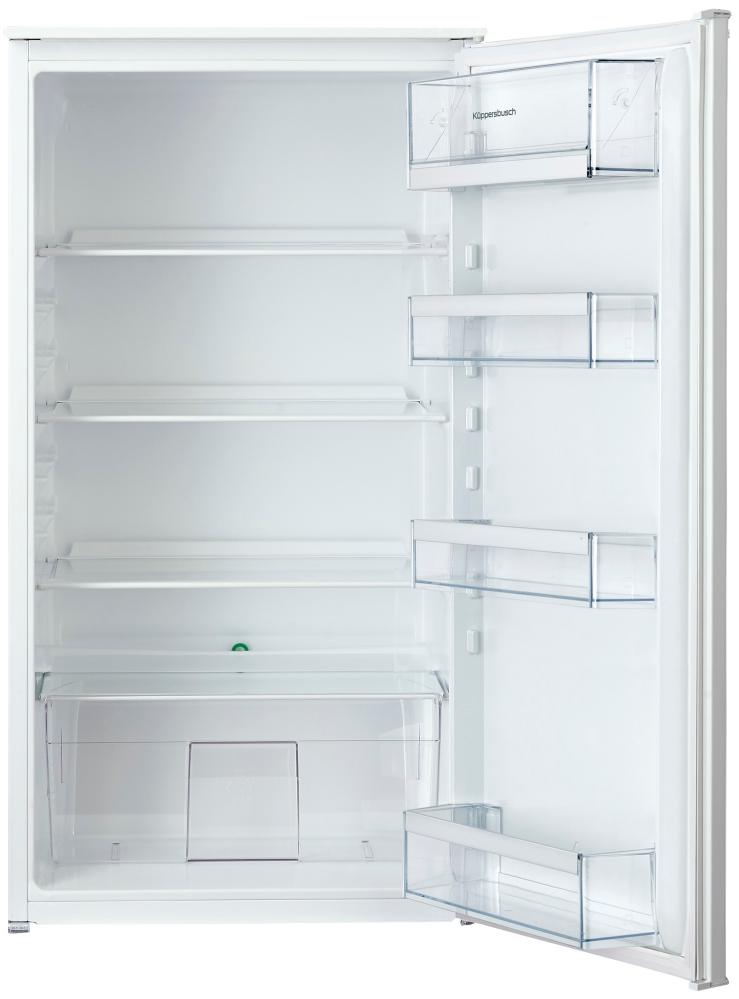 Kuppersbusch FK 3800.1i — небольшой встраиваемый холодильник с одной камерой, который можно использовать в сочетании с морозильником. При высоте 102 см модель имеет общий объем 176 литров. Мебельный фасад жестко крепится по системе door on door, его вес может достигать 25 кг, что способствует прочности конструкции. Дверца имеет правый упор, при необходимости она может быть перенесена на левую сторону. Удобная автоматическая капельная система размораживания гарантирует отсутствие льда на стенках камеры. Стеклянные полки могут регулироваться по высоте. Электронная панель управления размещается за дверцей в верхней части корпуса: для установки температуры в камере служат сенсорные кнопки.