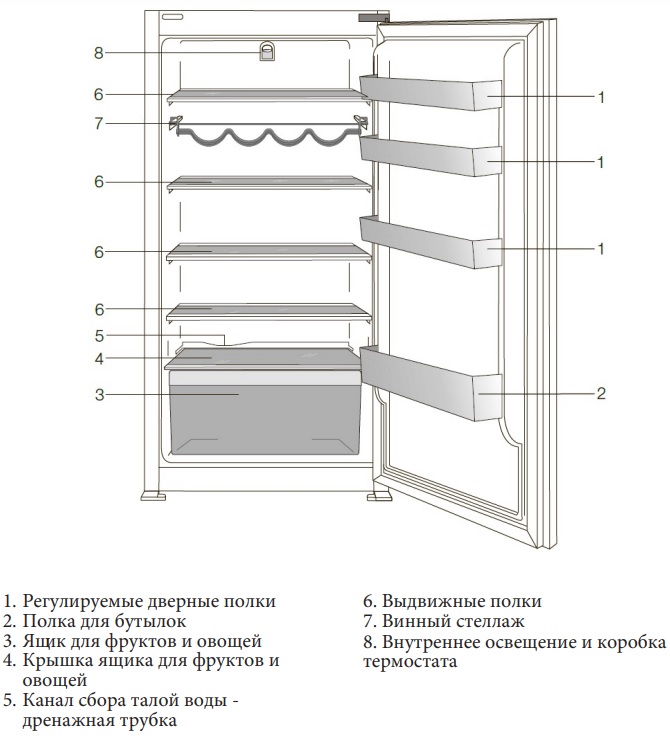 Встраиваемый прибор проще разместить в комнате, даже если общий метраж не такой уж большой. Вы можете спрятать его за декоративной панелью от мебельного фасада — советуем заранее определить нишу и заказывать панели исходя из типа крепления к двери. Способ монтажа в данной модели: скользящее крепление двери (система door sliding) Вы можете поменять направление открывания двери, так как упор переставляемый и ее можно перевесить на другую сторону. Такая функция открывает больше возможностей для установки. Холодильник без морозильной камеры имеет свои преимущества: больше места для хранения продуктов краткого срока годности, разнообразие полок и ящиков для овощей, фруктов, молочных изделий. Количество камер: 1.