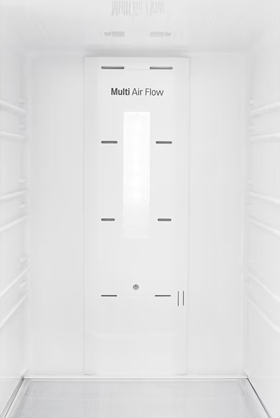 No Frost (Total No Frost, Frost Free): вентилятор обеспечивает циркуляцию охлажденного воздуха, благодаря чему лед не нарастает на стенке, а концентрируется только на скрытом внутри холодильника испарителе. Талая вода собирается в специальной емкости и испаряется. Такой холодильник не нужно размораживать – это экономит время и позволяет не останавливать прибор. Благодаря этим плюсам в современных моделях No Frost – самая распространенная система.