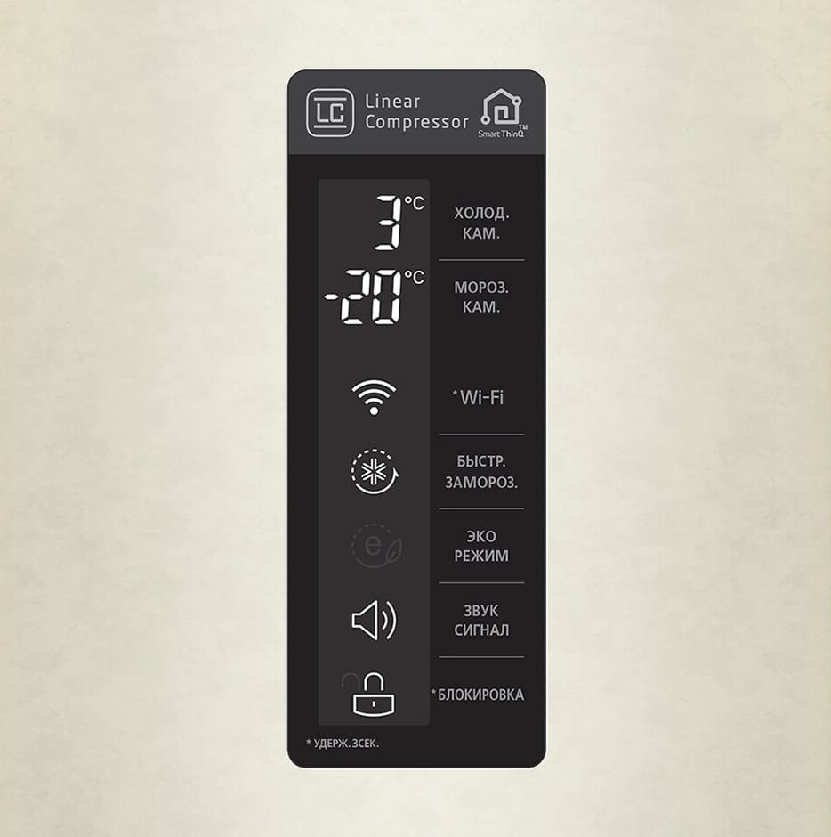 Система управления холодильником позволяет самостоятельно выбирать температуру охлаждения каждой камеры, задавать дополнительные параметры, контролировать работу прибора. П