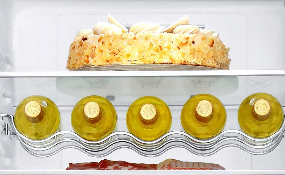 Полки на дверце холодильника позволяют значительно увеличить его вместимость, облегчают доступ к продуктам, особенно из таких категорий, как консервы, стеклянные банки, бутылки, в том числе молочные, яйца и многие другие. Как правило, на дверце холодильника может располагаться от 2 до 6 полок.