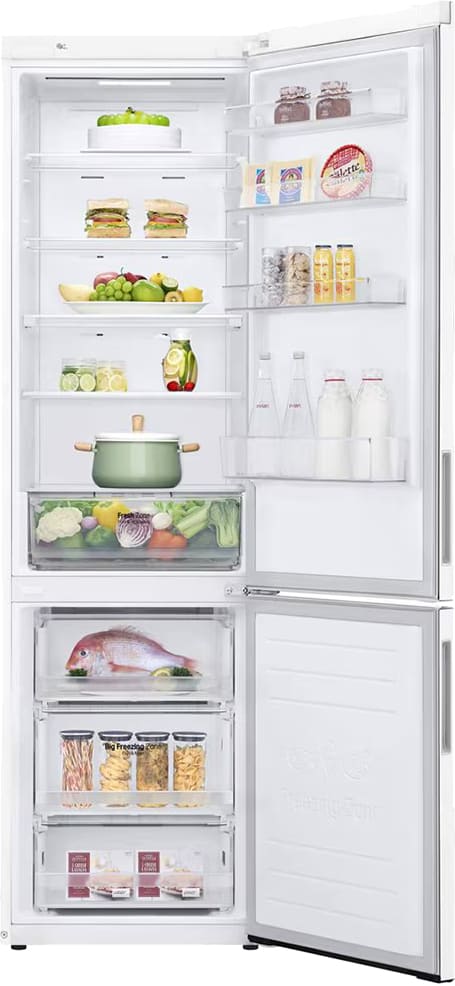 Внутреннее наполнение холодильной и морозильной камер включает многочисленные и разнообразные полки, ящики, контейнеры. Все они используются для более удобного и рационального размещения продуктов, которое обеспечивает хороший обзор содержимого холодильника и быстрый поиск.