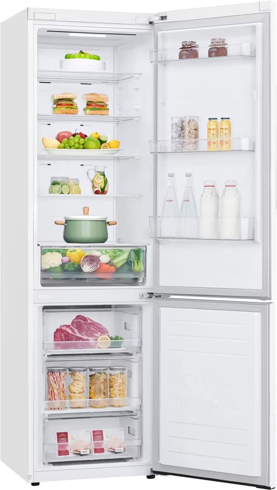 Внутреннее наполнение холодильной и морозильной камер включает многочисленные и разнообразные полки, ящики, контейнеры. Все они используются для более удобного и рационального размещения продуктов, которое обеспечивает хороший обзор содержимого холодильника и быстрый поиск.