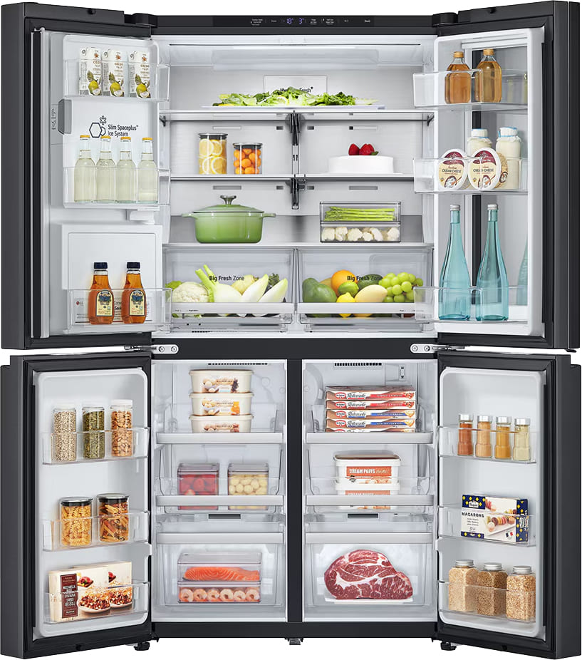 Четырех-, пяти- и шестикамерные модели включают, кроме морозильной и холодильной камер, отдельную зону свежести (иногда состоящую из сухого и влажного отсеков) и специальный отсек для ледогенератора, а в некоторых случаях еще и винное отделение.