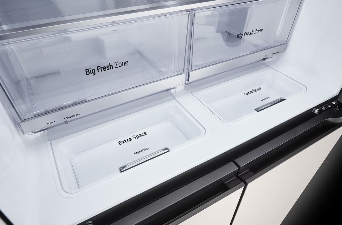 Трехкамерные модели выпускаются в нескольких вариантах. В некоторых случаях в качестве третьей камеры поступает так называемая зона свежести — отделение, где поддерживается температура около 0 градусов. В другом варианте подобные модели имеют морозильную камеру, состоящую из двух выдвижных ящиков.