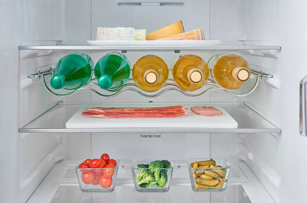 Внутреннее наполнение холодильной и морозильной камер включает многочисленные и разнообразные полки, ящики, контейнеры. Все они используются для более удобного и рационального размещения продуктов, которое обеспечивает хороший обзор содержимого холодильника и быстрый поиск.