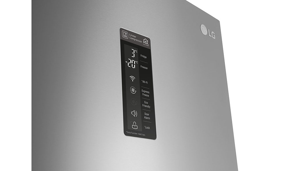 Гораздо точнее сориентироваться по индикаторам можно в холодильниках с электронной системой управления. Эти устройства обычно оснащены дисплеем, на котором высвечиваются значения фактической температуры в холодильной и морозильной камерах. Рядом с ними располагаются кнопки, во многих случаях сенсорные, при помощи которых можно регулировать температуру в каждой камере отдельно, и индикаторы включения этих камер. Здесь же, на панели инструментов, находятся индикаторы, указывающие на активацию дополнительных опций — например, режимов быстрого замораживания и быстрого охлаждения, отпускного режима, блокировки панели управления от детей.