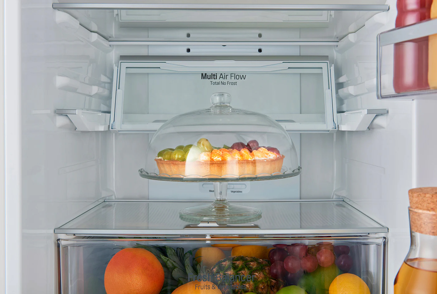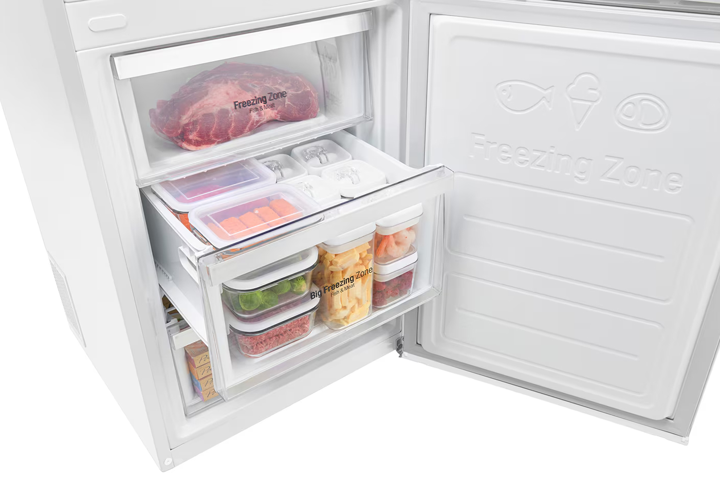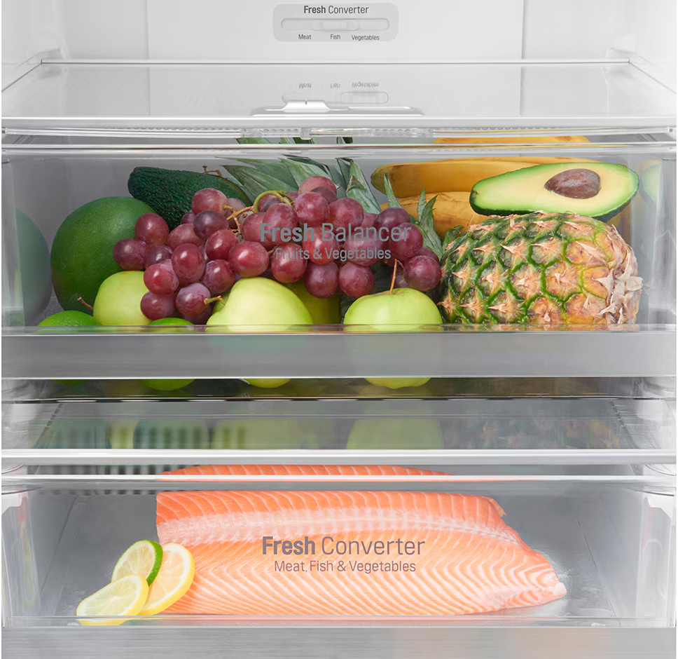 Специальная зона свежести предназначена для правильного и более длительного хранения овощей, фруктов, зелени. В ней поддерживается околонулевая температура, поэтому продукты не перемораживаются и не пересыхают.