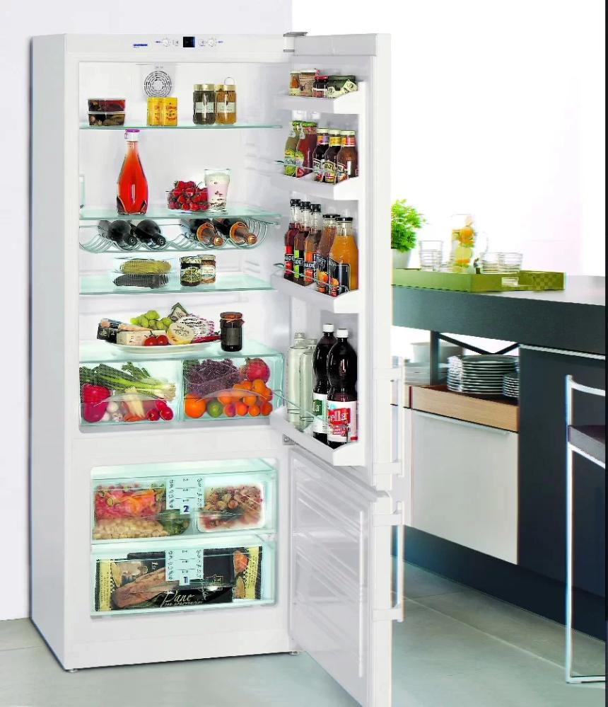 Двухкамерные модели — самые востребованные у покупателей. Они состоят из холодильного отделения и морозильной камеры, которая может располагаться сверху или снизу. Производители предлагают огромный ассортимент подобных устройств, от дешевых до элитных моделей, — с размораживанием No Frost, электронным управлением и двумя контурами охлаждения.