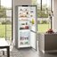 Встраиваемые холодильники монтируются в нишу или колонну. Передняя их часть закрывается декоративным мебельным фасадом и снаружи не отличается от дверцы обычного кухонного шкафа, так что их не нужно подбирать под интерьер помещения. Объем этих холодильников, как правило, несколько меньше, чем у отдельностоящих, так как при встраивании необходимо оставлять свободное пространство для вентиляции. Они отличаются меньшим уровнем шума, а также лучше держат холод и отличаются большей экономичностью из-за дополнительного слоя изоляции. Ассортимент этих холодильников не так велик, как у отдельно стоящих, установка более трудоемкая, а стоимость обычно несколько выше.