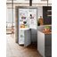 Модель высотой 186 см может устанавливаться вплотную к стене или в готовую нишу. Корпус серебристого цвета целиком выполнен из стали, а покрытие SmartSteel защищает его от отпечатков пальцев. Выровнять прибор при установке помогут регулируемые ножки. В холодильной камере расположены полки из ударопрочного стекла, которые можно легко переставить по высоте, большой ящик для фруктов и овощей и металлическая полка для бутылок. На дверце имеются 3 полки и отделение для хранения консервов. В морозильном отделении объемом 95 литров находятся плотно закрывающиеся ящики FrostSafe, сохраняющие холод при частом открывании дверцы. Если предстоит разместить большое количество свежих продуктов, можно воспользоваться режимом SuperFrost, быстро понижающим температуру. Время хранения продуктов при отключении электроэнергии составляет 26 часов, а производительность замораживания достигает 10 кг в сутки . Система полок и контейнеров VarioSpace предусматривает их легкое извлечение для размещения в морозильнике больших продуктов.