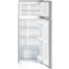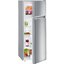 Модель высотой 140 см и шириной 55 см с морозильной камерой сверху занимает минимум места и может устанавливаться в малогабаритной кухне, на даче, в студии. Общий объем составляет 241 литр, небольшая морозильная камера имеет вместимость 45 литров. Модель отличает высокий класс энергопотребления A++, а климатический класс SN-T гарантирует стабильную работу в летнее время при наружных температурах в диапазоне от +10°С до +43. Серебристый корпус с фронтом из нержавеющей стали дополняет горизонтальная встроенная ручка, дверцу при желании можно перевесить справа налево. В холодильном отделении расположены 3 полки из ударопрочного стекла, 2 из них регулируются по высоте. Имеются также полки на двери для хранения бутылок и консервов и контейнер для фруктов и овощей. В отделении предусмотрено удобное автоматическое размораживание. В морозильном отделении применяется технология охлаждения SmartFrost, препятствующая образованию наледи на стенках. Время сохранения холода при отключении питания достигает 22 часов. Температура регулируется при помощи поворотного переключателя: предусмотрено 7 степеней охлаждения, а среднее положение соответствует 5°С.