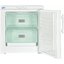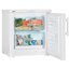 Отдельно стоящую модель высотой всего 63 см, шириной 55 см и весом не более 30 кг можно установить вплотную к стене или встроить в нишу в кухонном гарнитуре, поставить на стол, без труда перевезти в обычном автомобиле. Общий объем составляет 70 литров — такая камера будет незаменима летом на даче или дополнит прибор без морозильника. Несмотря на скромные размены, модель обладает высокой производительностью и способна замораживать до 8 кг продуктов в сутки. По своим характеристикам морозильник не уступает более вместительным приборам. Корпус изготовлен из стали, устойчивой к механическим повреждениям. Устройство отличает глянцевый белый фасад и эргономичная ручка со встроенным толкателем. Для регулировки температуры в широком диапазоне от −15 до −32 °C и для задания дополнительных параметров используется система управления MagicEye класса Comfort с дисплеем и кнопками. Для защиты от непредвиденного изменения настроек функции панели блокируются. Для размещения продуктов служат два вместительных пластиковых контейнера с прозрачной передней частью.