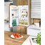 Небольшое устройство высотой 102 см и емкостью 192 литра с автоматической системой размораживания полностью интегрируется в интерьер и подойдет для установки дома, в офисе или в гостинице. Дверные петли находятся справа, но без труда перенавешиваются на левую сторону. Дверца открывается очень широко благодаря жесткой навеске мебельного фасада. Прибор оснащен электронным управлением: панель управления располагается в верхней части за дверцей и включает сенсорные кнопки и ЖК-дисплей MagicEye с цифровой индикацией температуры. Функции панели управления можно заблокировать от детей. Специальный индикатор и звуковой сигнал оповестит о неплотно закрытой дверце. Модель отличает уникально низкий уровень шума, равный всего 33 дБ. При повышении наружной температуры рекомендуется включать встроенный вентилятор, равномерно распределяющих охлажденный воздух по всему объему камеры. Режим суперохлаждения SuperСool позволит уменьшить температуру перед тем, как загрузить в холодильник большое количество продуктов. Полки Premium GlassLine изготовлены из ударопрочного стекла, их можно регулировать по высоте, а среднюю полку — складывать в двух положениях.