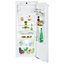 Встраиваемые холодильники монтируются в нишу или колонну. Передняя их часть закрывается декоративным мебельным фасадом и снаружи не отличается от дверцы обычного кухонного шкафа, так что их не нужно подбирать под интерьер помещения. Объем этих холодильников, как правило, несколько меньше, чем у отдельностоящих, так как при встраивании необходимо оставлять свободное пространство для вентиляции. Они отличаются меньшим уровнем шума, а также лучше держат холод и отличаются большей экономичностью из-за дополнительного слоя изоляции. Ассортимент этих холодильников не так велик, как у отдельно стоящих, установка более трудоемкая, а стоимость обычно несколько выше.