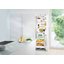Устройство высотой 177 см с одной дверцей без морозильной камеры имеет правый дверной упор, при необходимости петли можно перенавесить на левую сторону. Регулируемые ножки облегчают встраивание в готовую нишу или колонну. Декоративный мебельный фасад жестко крепится прямо на дверцу: простота конструкции обеспечивает дополнительную прочность, а также позволяет широко открывать дверцу. Автоматическая система размораживания гарантирует легкую очистку стенок, на которых не оседает лед и иней. Светодиодное освещение позволяет быстро отыскать продукты в камере. Полки изготовлены в дизайне Comfort GlassLine из высококачественного закаленного стекла и могут регулироваться по высоте. Для хранения овощей и фруктов предусмотрен большой ящик. Средняя полка может складываться в двух положениях. Режим суперохлаждения SuperСool эффективно понижает температуру в камере перед загрузкой свежих продуктов в большом количестве. Панель управления может блокироваться от детей. Холодильник отличается экономичностью и относится к классу энергоэффективности А++. Комфорт в использовании гарантирует инверторный компрессор с очень низким уровнем шума — 34 дБ.