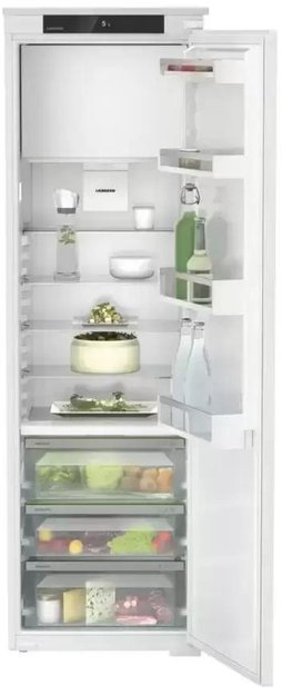 Встраиваемый холодильник Liebherr IRBSe 5121 Plus оснащен сверху небольшой морозильной камерой, которая вместит в себя необходимые продукты. Если при встраивании в нишу для мебели вам понадобится перевесить дверь морозилки, достаточно будет передвинуть ползунковый регулятор справа налево и все готово.