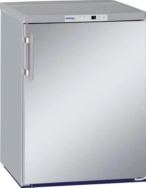 Холодильник Liebherr TPesf 1714 Comfort — компактный прибор высотой 85 см из дизайн-серии HardLine. Модель отличает серебристый стальной корпус, дверца из нержавейки и удобная ручка со встроенным толкателем. Благодаря стандартной ширине 60 см и съемной верхней панели устройство можно установить под столешницей или разместить в готовой нише. При автономном размещении верхняя панель послужит в качестве стола. Облегчить выбор места для установки прибора помогут перенавешиваемая дверца и регулируемые по высоте ножки. Общий объем холодильника составляет 152 литра. Расположенная сверху 4-звездочная морозильная камера объемом 19 литров позволяет поддерживать температуру −18°C и ниже. Она способна сохранять холод на протяжении 10 часов при отключении электроэнергии. В холодильном отделении одну из двух полок из ударопрочного стекла можно переставить по высоте. Бутылки и банки могут устанавливаться на съемных полках, расположенных на дверце. Климатический класс SN-ST позволяет использовать прибор при наружной температуре от +10°С до +38°С.