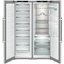 В числе подобных устройств имеются как отдельностоящие, так и встраиваемые модели: в любом случае они требуют много места для установки и могут быть размещены в просторном помещении. Преимуществом подобных устройств является прежде всего их вместительность, отличный обзор обеих камер, удобство использования, два контура охлаждения и возможность точной раздельной регулировки температуры. Кроме того, модели Side-by-Side преимущественно относятся к премиум-классу — имеют стильный внешний вид и большой набор дополнительных возможностей. Система размораживания подобных устройств — No Frost или капельная, — позволяет свести уход за прибором к минимуму.